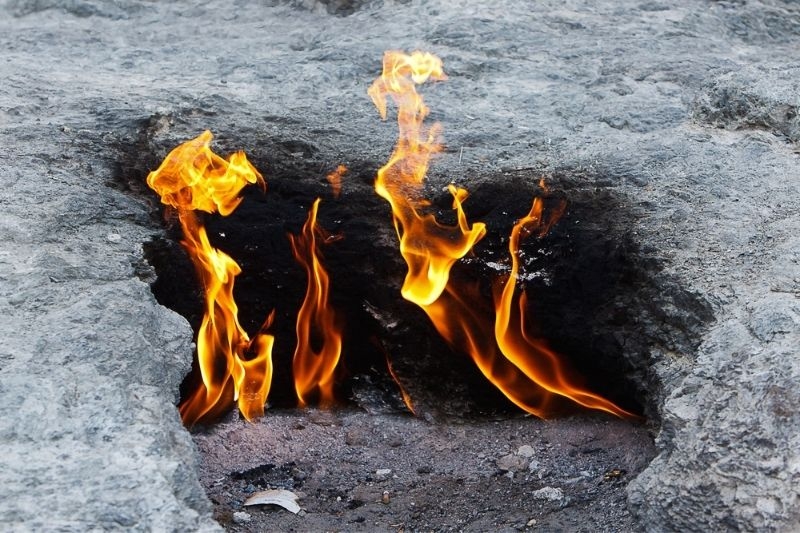 - У науки более приземленный ответ на загадочное явление: скопления природного газа метана с иными примесями просачиваются сквозь пористую поверхность и, вступая в реакцию с кислородом, приводит к возгоранию, от маленького огонька до двухметрового факела. Благодаря этой особенности долгое время Янарташ служила своеобразным маяком для мореплавателей, указывая тем нужный путь.
